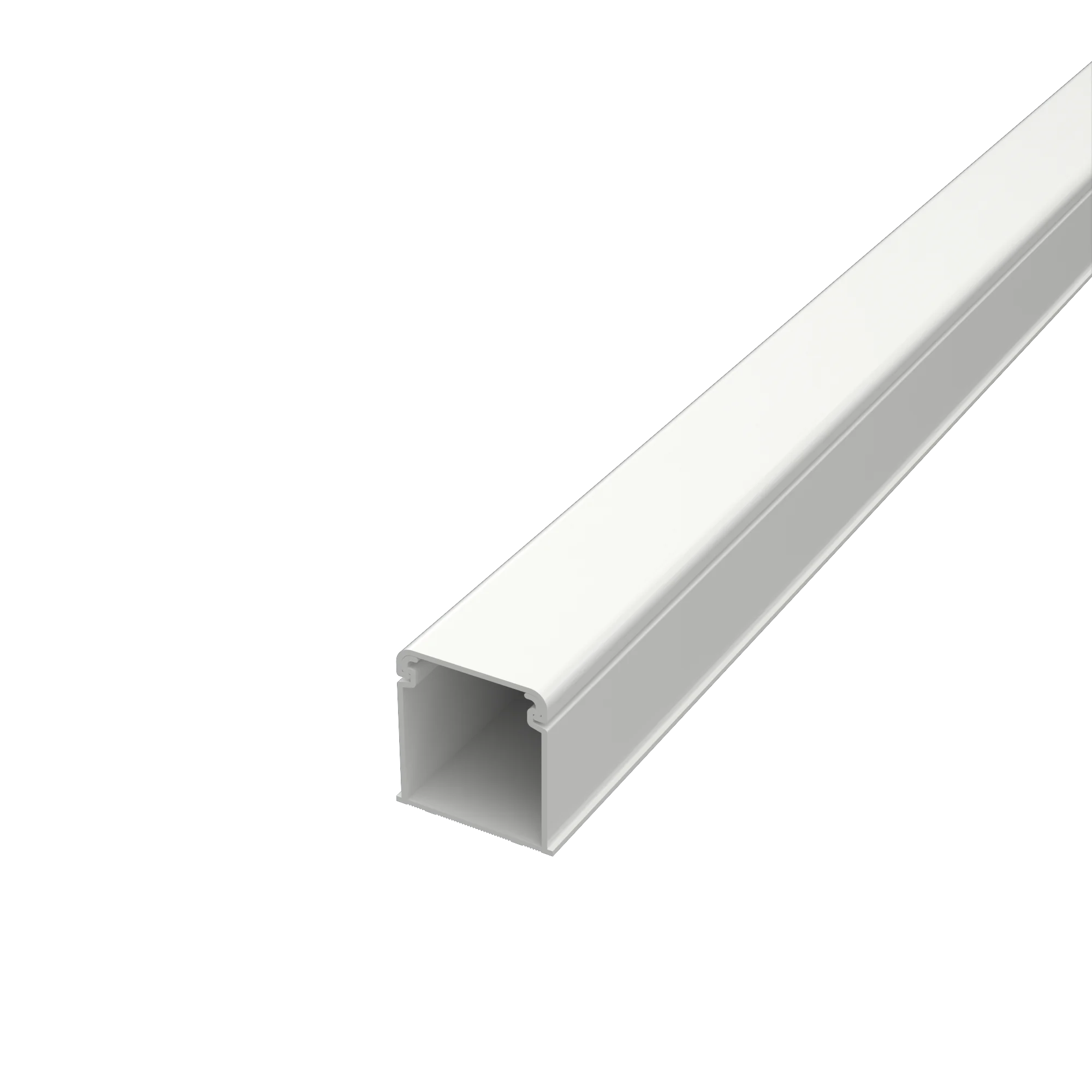 Cable canal de 27 mm de base por 30 mm de altura, color blanco, con opción de poseer o no adhesivo doble fas en su base.
