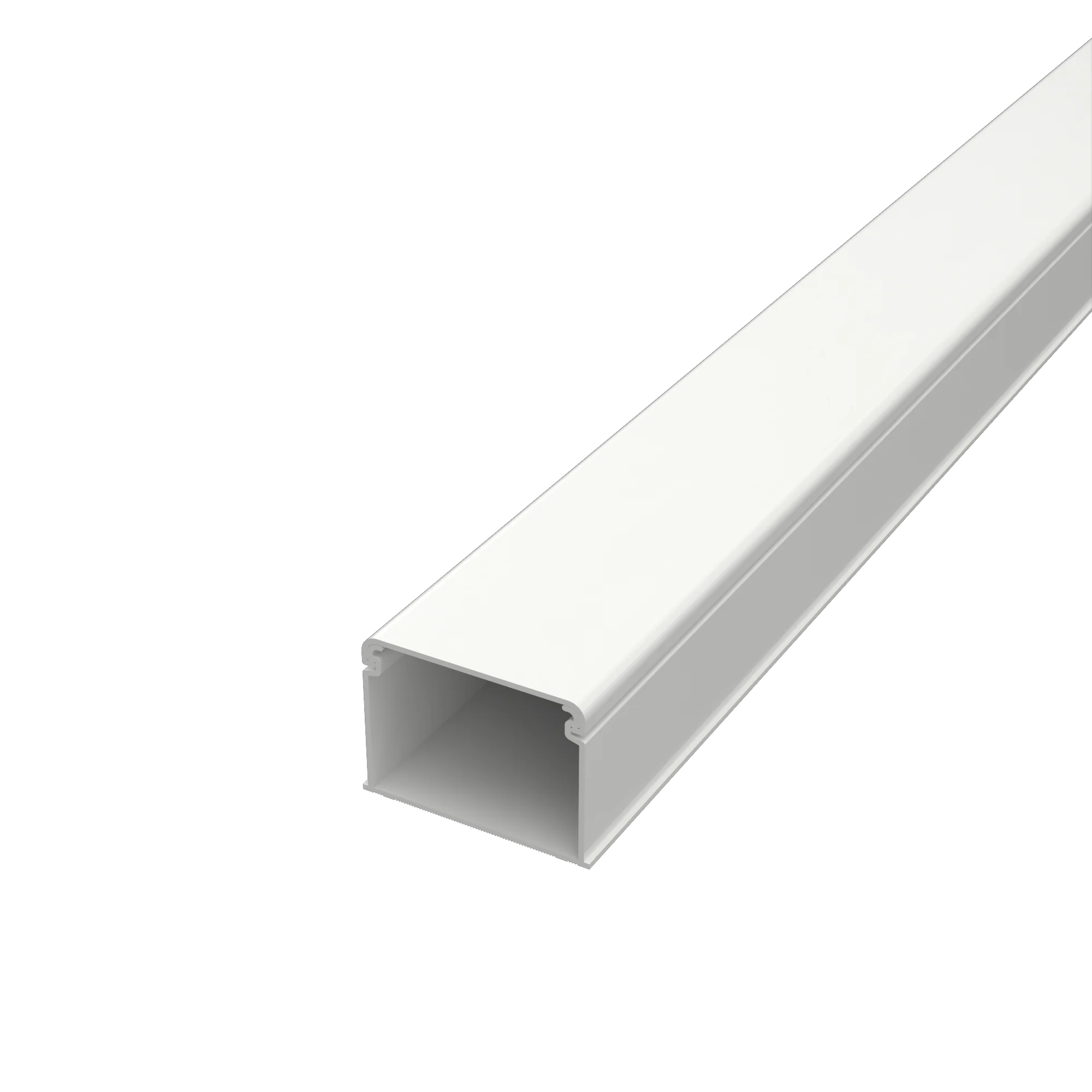 Cable canal de 40 mm de base por 30 mm de altura, color blanco, con opción de poseer o no adhesivo doble fas en su base.
