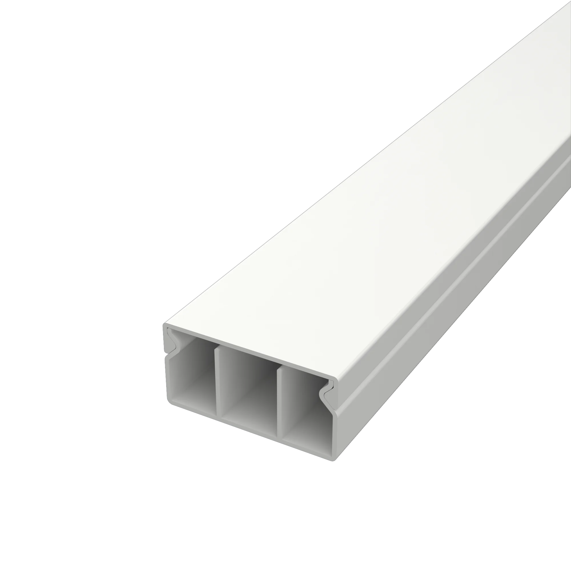Cable canal de 60 mm de base por 30 mm de altura, color blanco, con 2 divisiones internas.