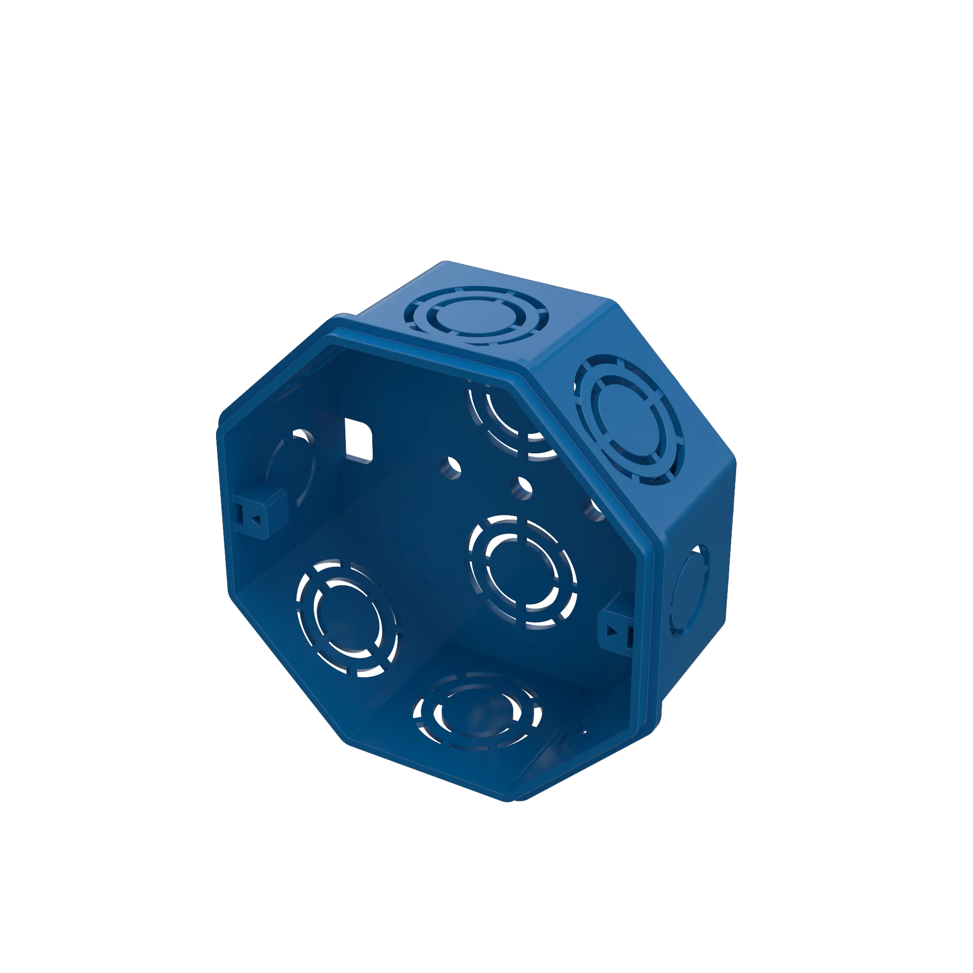 Caja de embutir octogonal grande, fabricada en termoplástico auto extinguible.