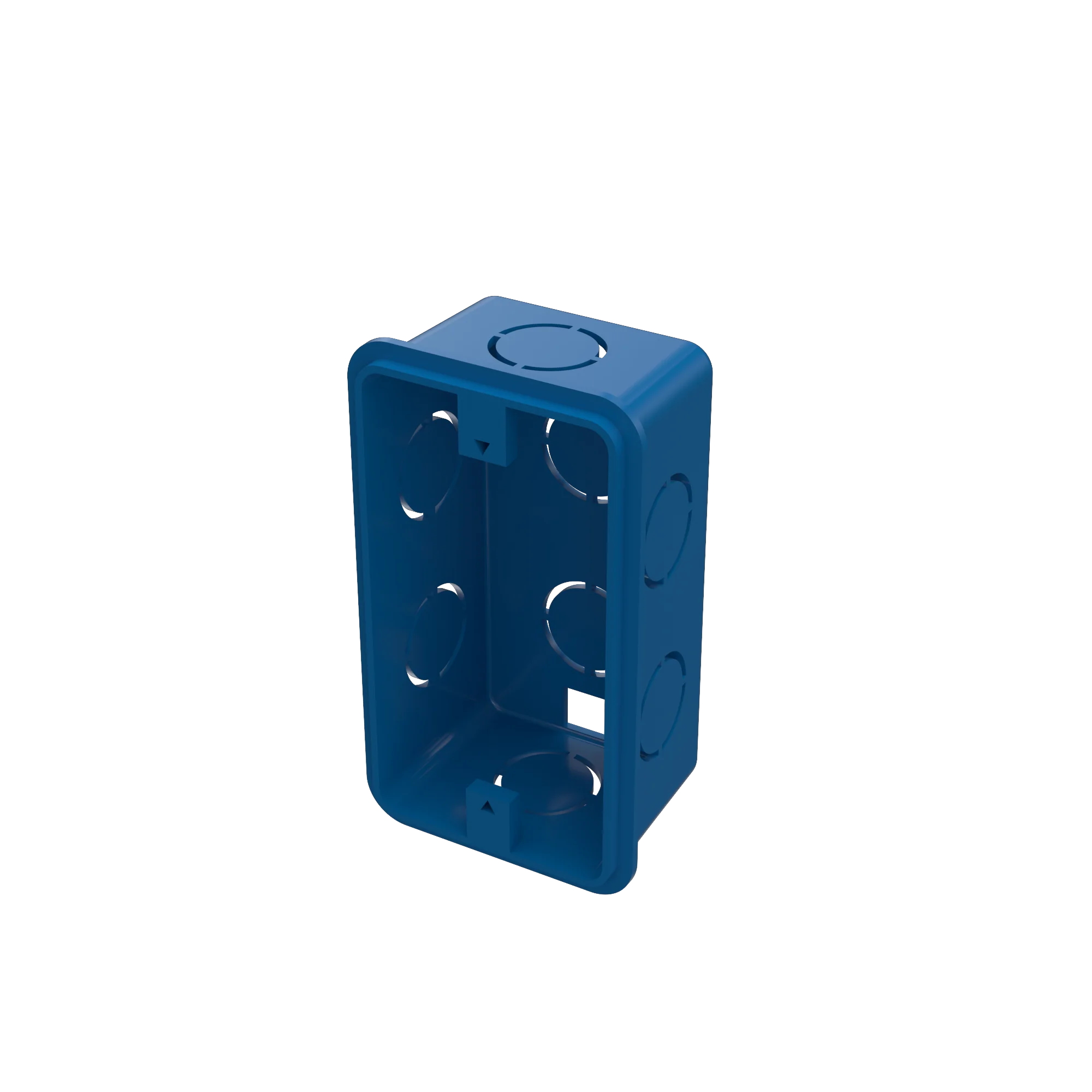 Caja de embutir rectangular chica, fabricada en termoplástico auto extinguible.