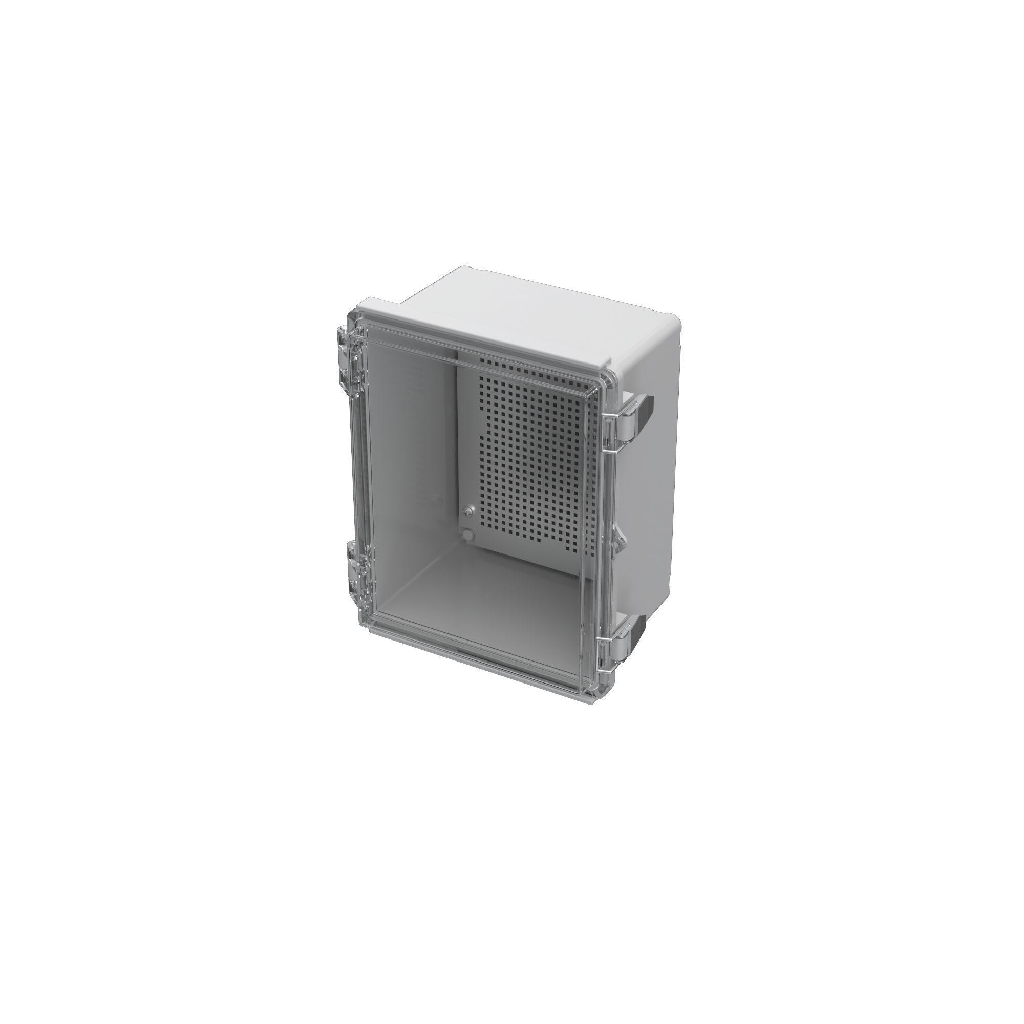 Gabinete con tapa transparente para uso eléctrico industrial o domiciliario, de apertura rápida mediante un innovador sistema de cierre por herrajes. Incorpora en su interior una práctica bandeja con múltiples perforaciones para el montaje de diferentes elementos de maniobra y control. Además, ofrece tres alternativas distintas de fijación a superficies, facilitando la tarea del instalador.