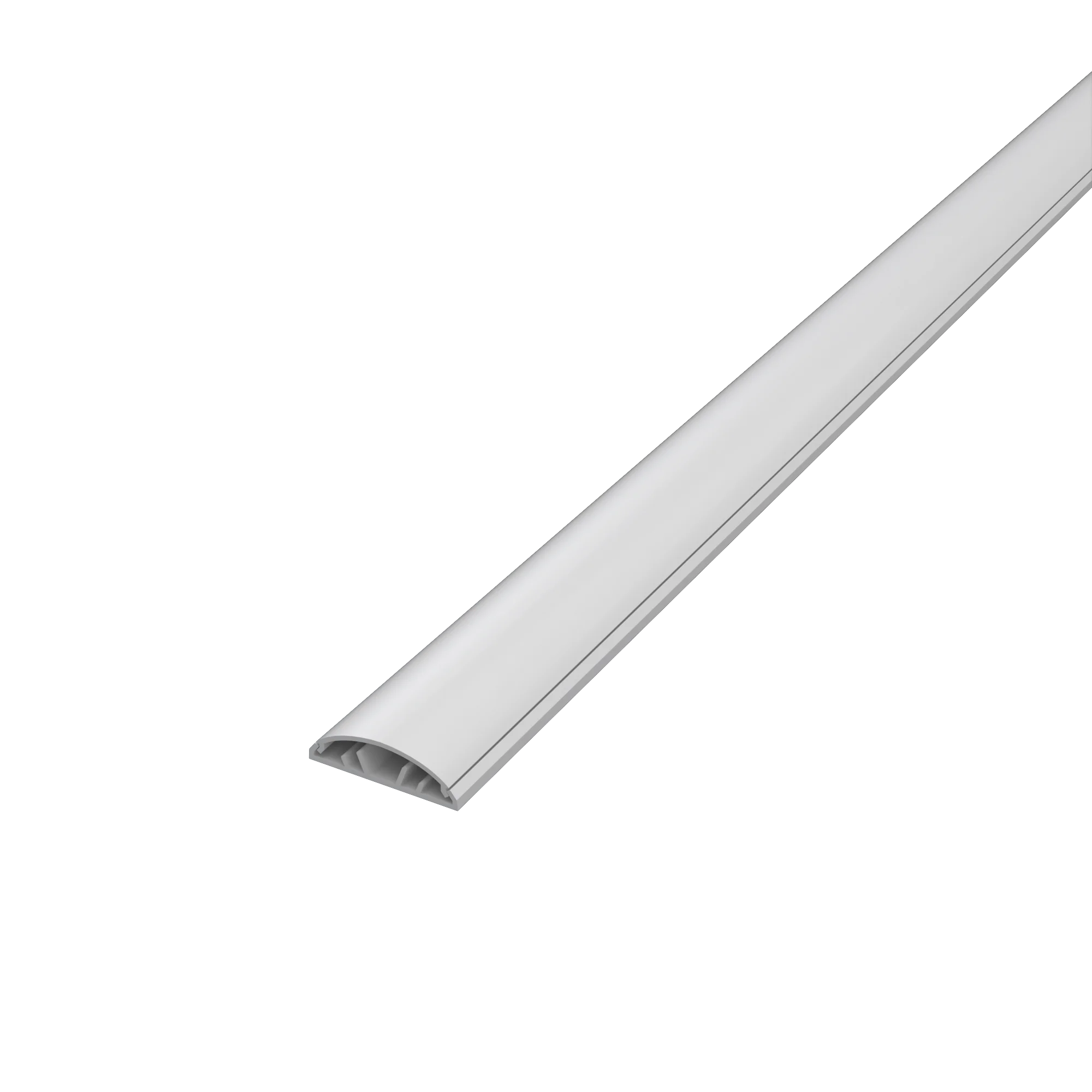 Piso canal de 48 mm de base por 13 mm de altura, disponible en color gris o blanco.