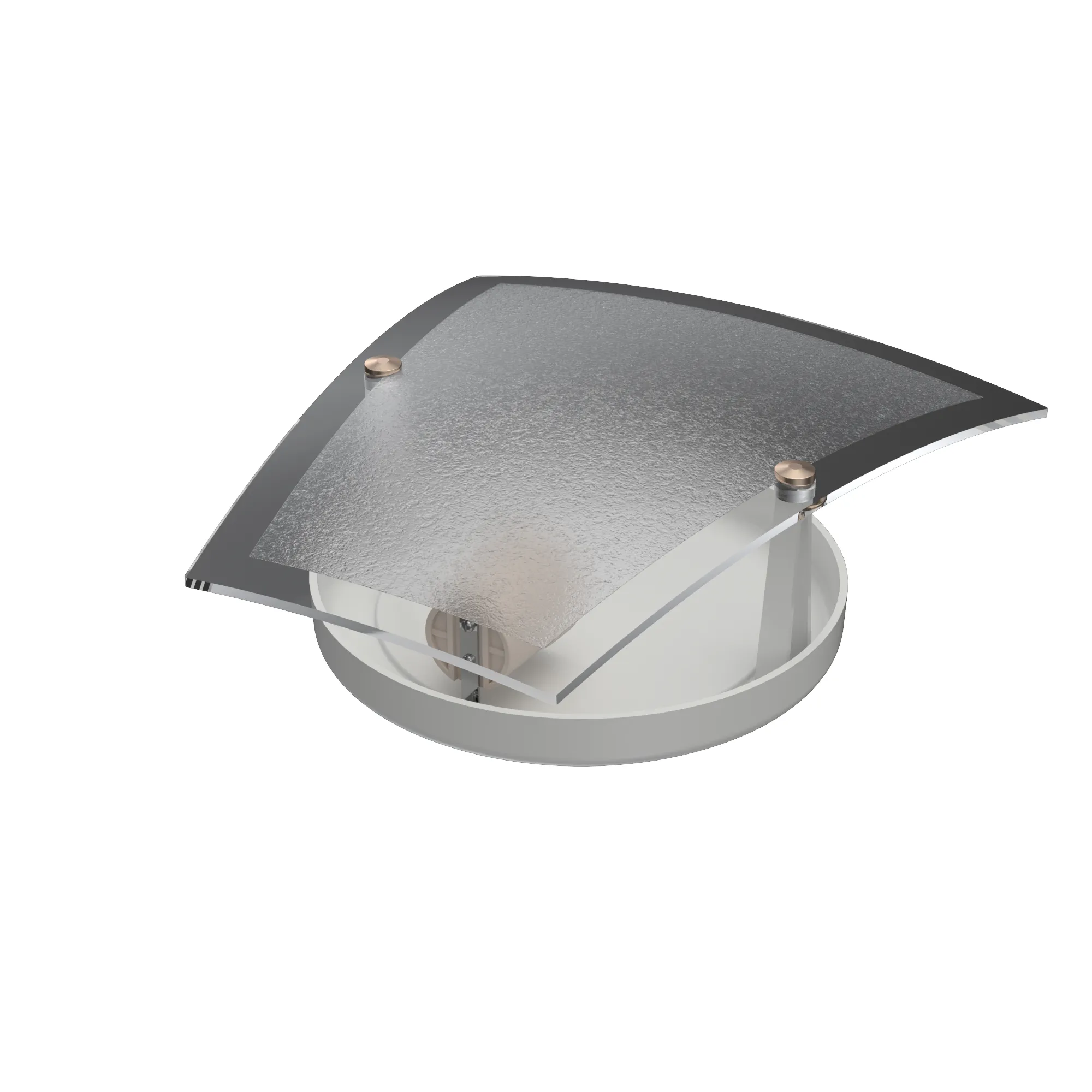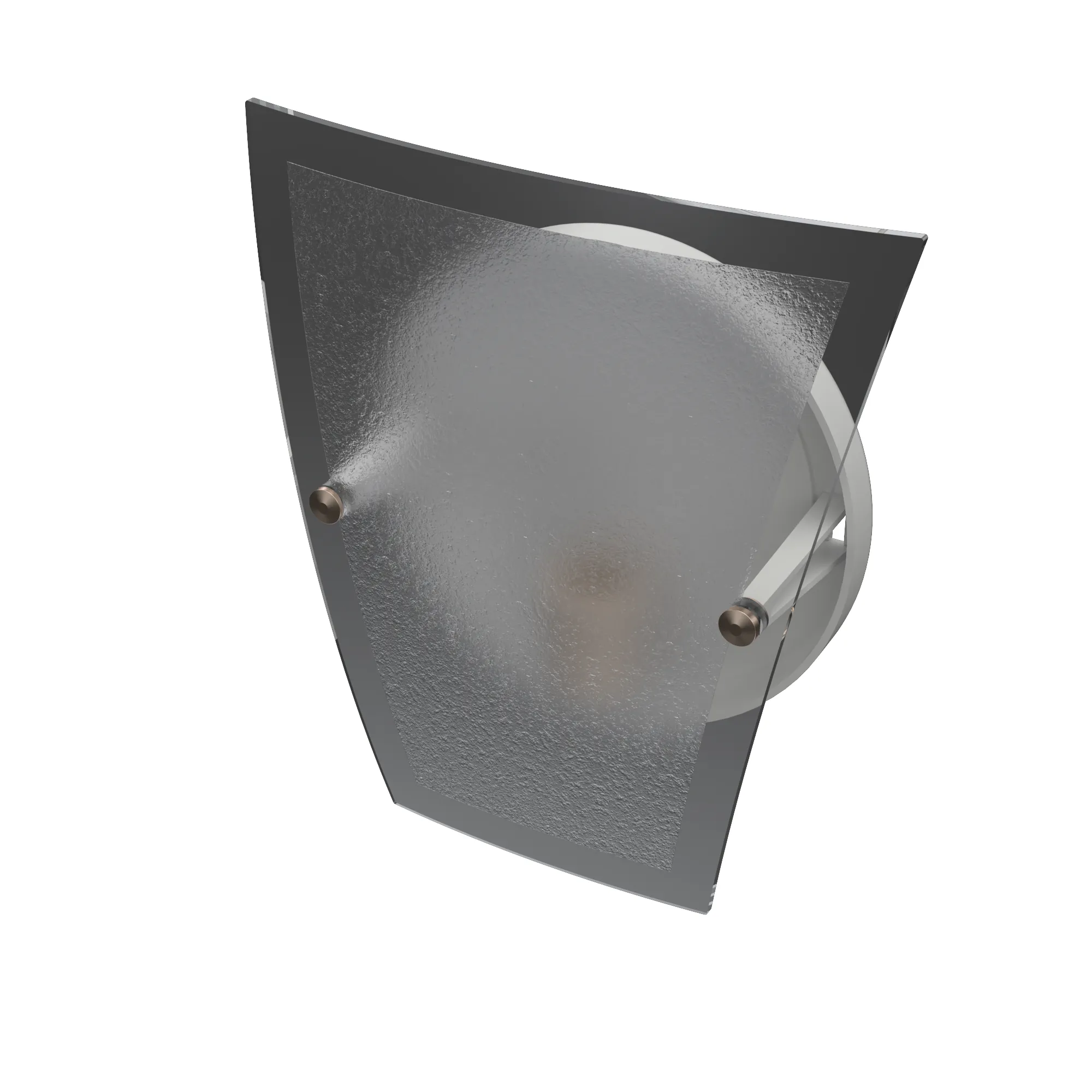 Base en color blanco y tulipa en cristal, con tuercas de terminación de bronce en el frente.